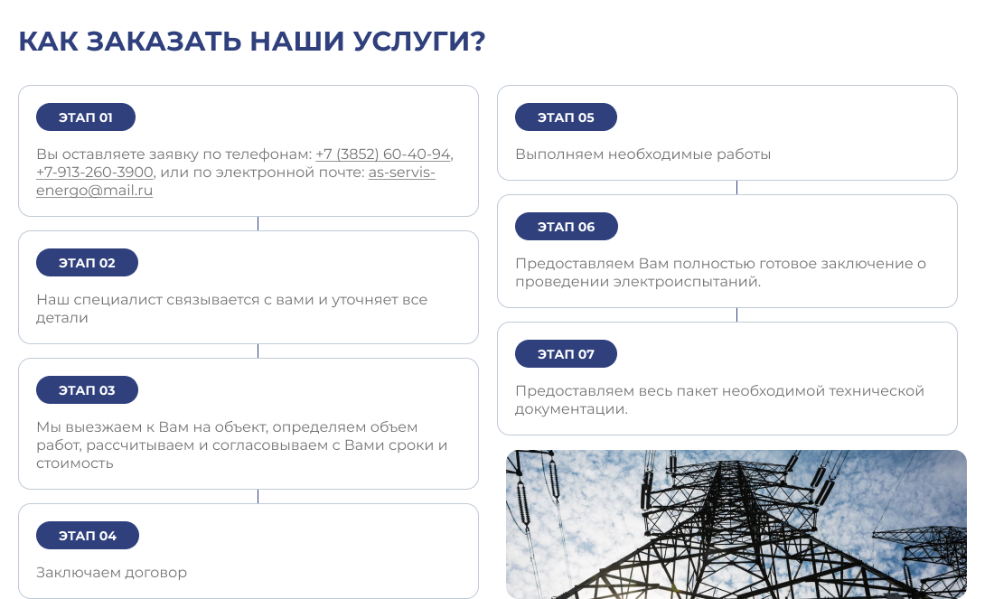 Вы можете пригласить специалистов ООО «АС-СЕРВИСЭНЕРГО» для проведения осмотра объекта и составления перечня необходимых работ.